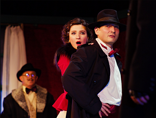 Постановка выдержана в великолепном стиле «нуар» - с интерьерами и костюмами в духе 50-х годов XX века.